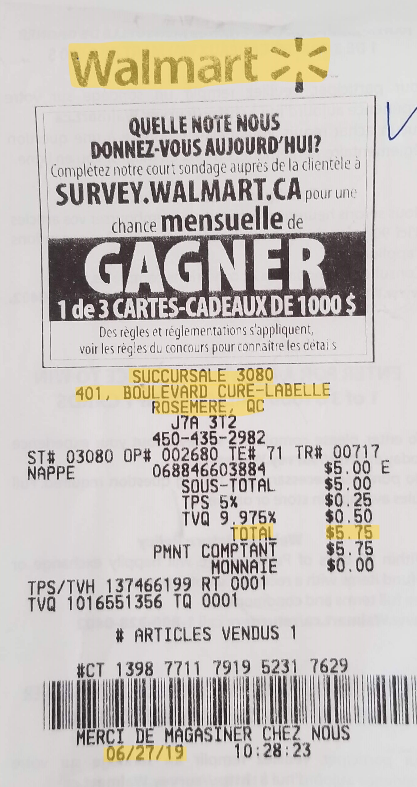 La date d’achat est importante, et doit être visible en tout temps sur le reçu.