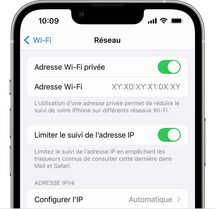 Descendez dans les paramètres jusqu’à voir le champ Adresse Wi-Fi.