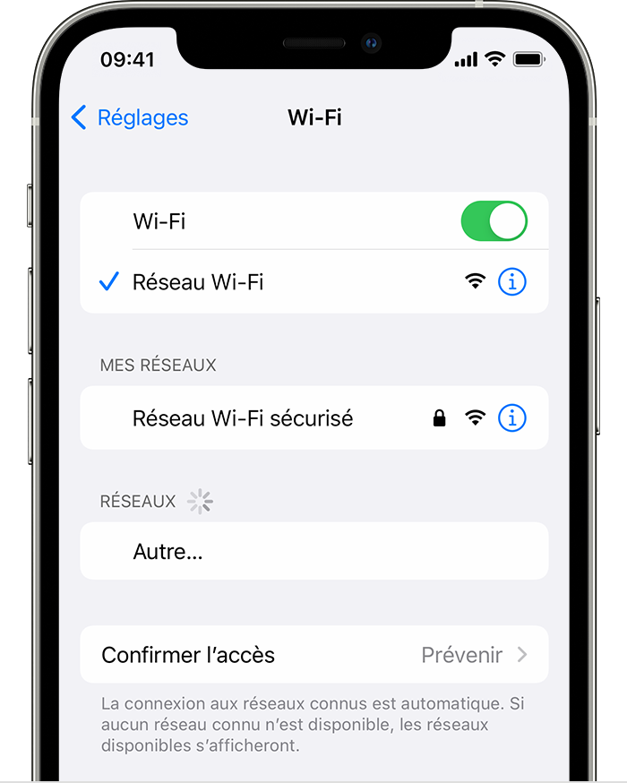 - Sur l’écran d’accueil, accédez à Réglages > Wi-Fi.