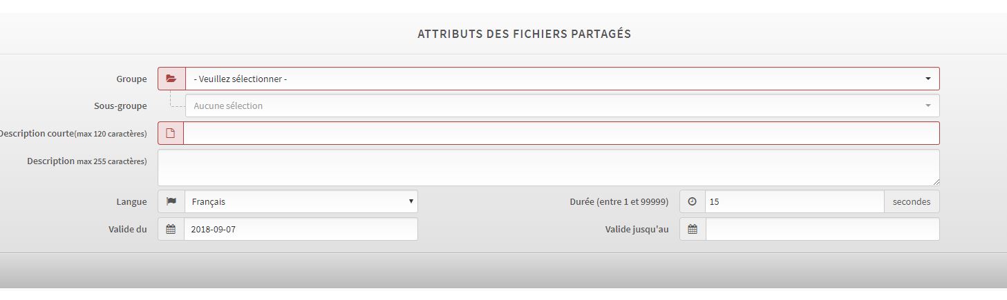 - Les dates de validité permettent d’ajouter du contenu à l’avance et de planifier sa date de diffusion en lui assignant une date de début et lecture et de fin de lecture.