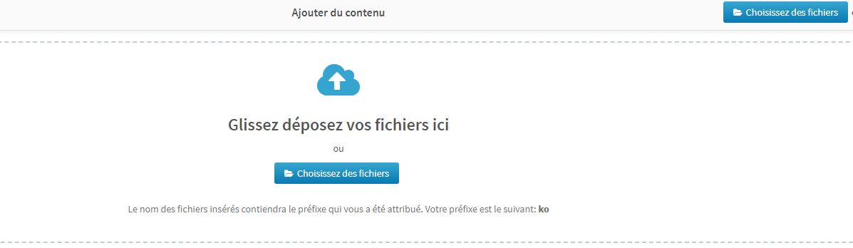 - Pour ajouter du contenu il est permis de glisser le fichier directement sur la page ou de cliquer sur Choisissez vos fichiers.