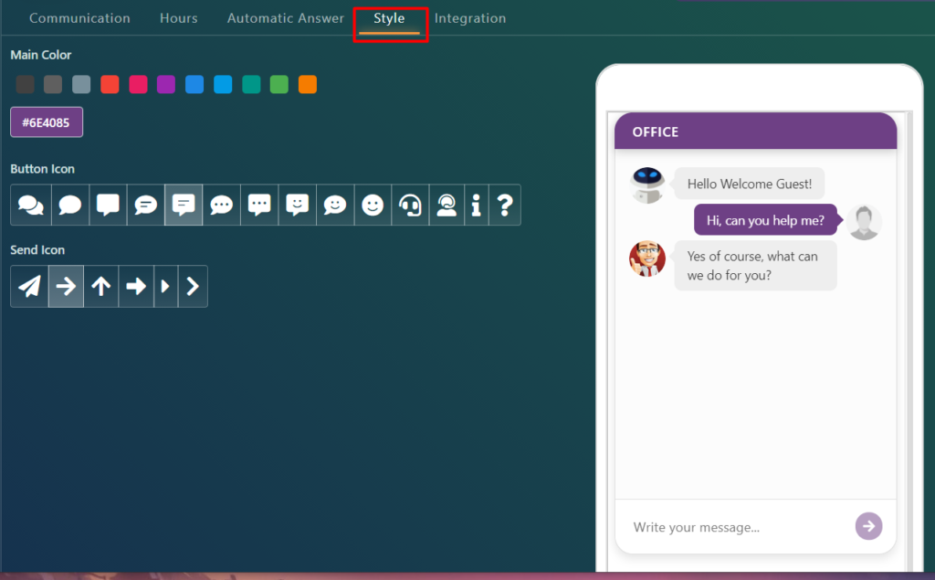 Select the Style tab in the Chat settings to modify the appearance of your chat: