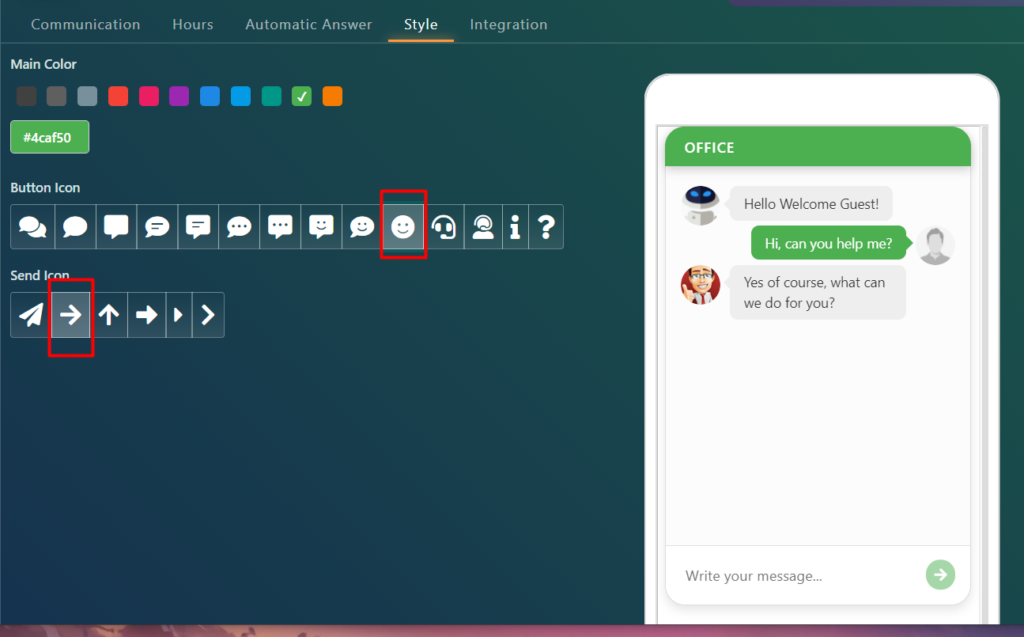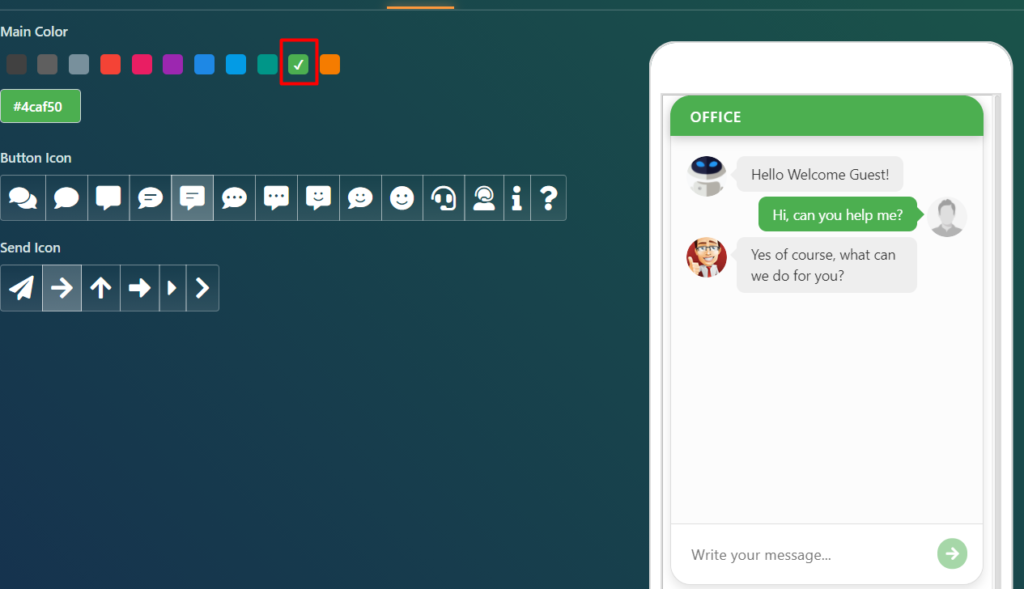 You can switch the Main Color of the chat. In this example, the color was set to green: