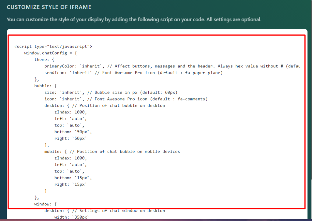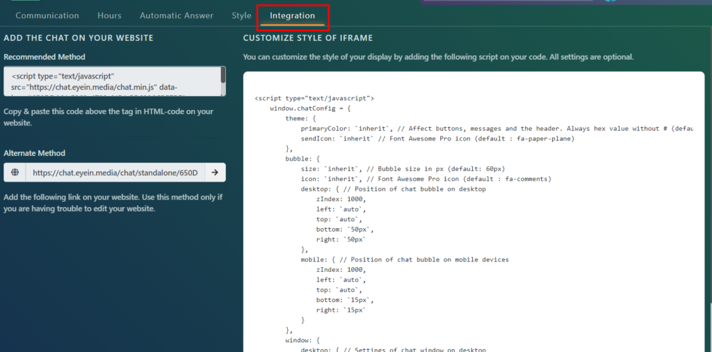 You can add the Chat feature to your website by copy-pasting this HTML code: