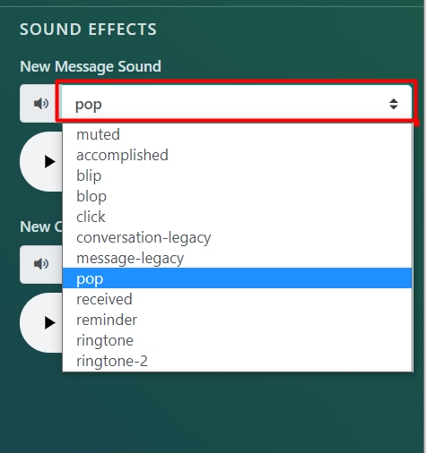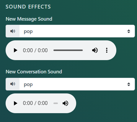 For sound effects settings, you can adjust the sound effect produced when you receive a new message and when a client starts a new conversation: