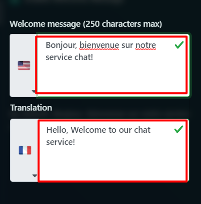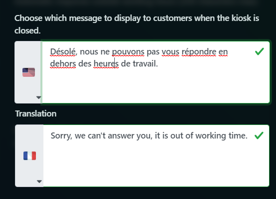 Then type in a response in French and in English. When finished with your message, click on the area outside of the message boxes.