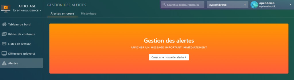 Alertes ArticlesCréer une alerte Consulter l’historique des alertes Navigation de doc← Diffuseurs (players)Questions Fréquentes Affichage → Cet article vous a-t-il été utile ? Oui Non