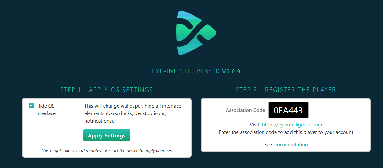 Avant de pouvoir configurer votre diffuseur vous devez l’ajouter à votre inventaire sur Eye-Intelligence. Cette étape survient lorsque vous voyez un écran possédant un code tel quel celui ci-dessous.