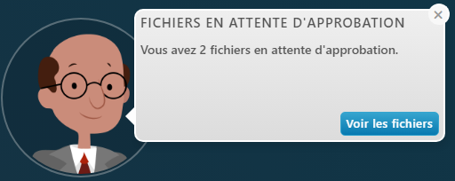 De plus, votre loyal Alfred sera là pour vous informer lorsque les dossiers doivent être approuvés . Vous pouvez cliquer sur le bouton Voir les fichiers pour accéder à la liste des fichiers qui nécessitent une révision afin d’être approuvés.