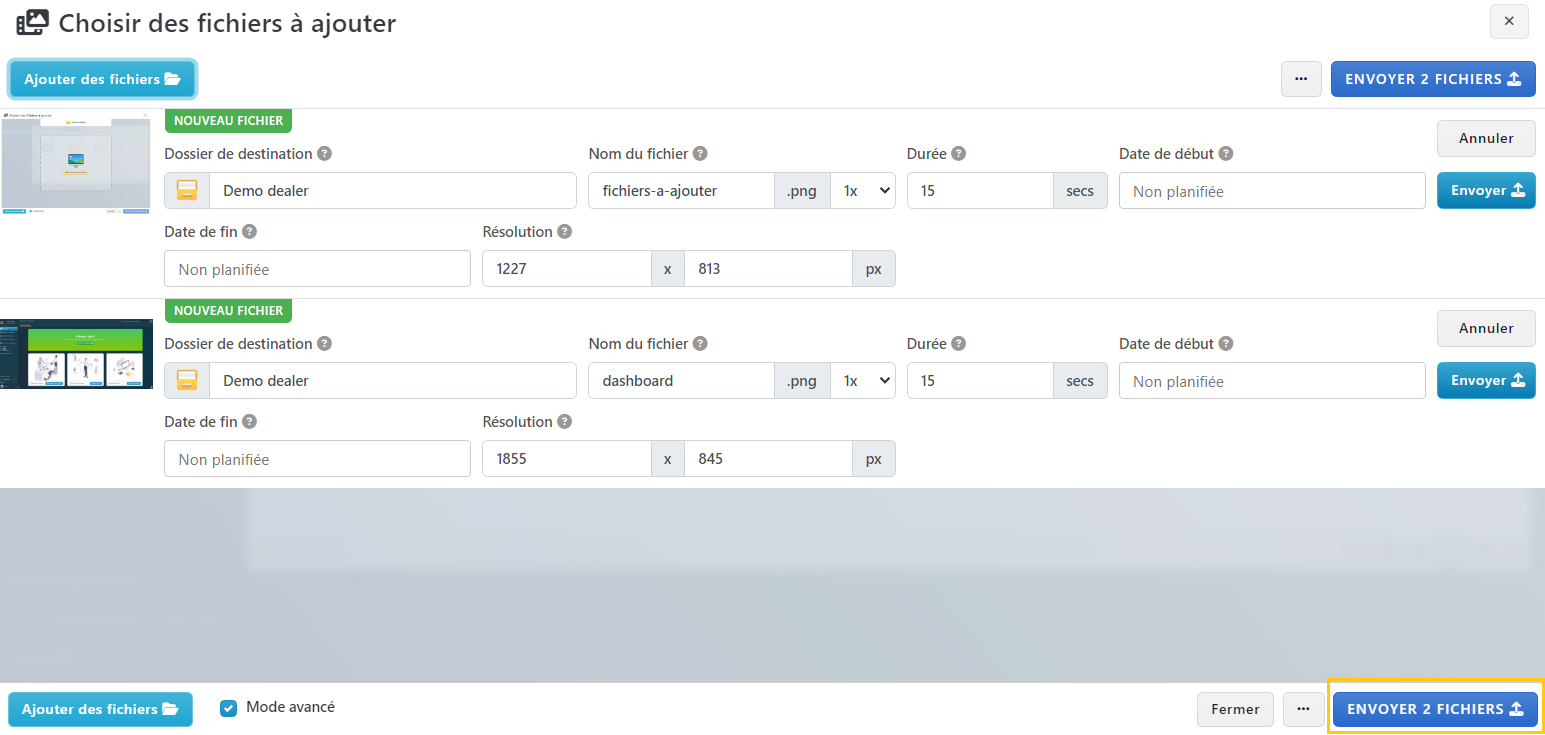 - La Date de début qui peut être utilisée pour programmer l’affichage d’un fichier dans le futur.