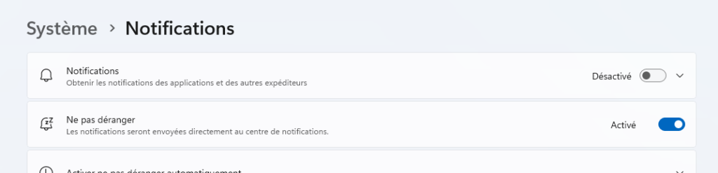 Voici des paramètres que nous recommandons de configurer dans le panneau de paramètres pour Windows 10 et 11 :