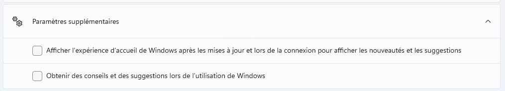 - Désactiver Afficher l’expérience d’accueil de Windows…