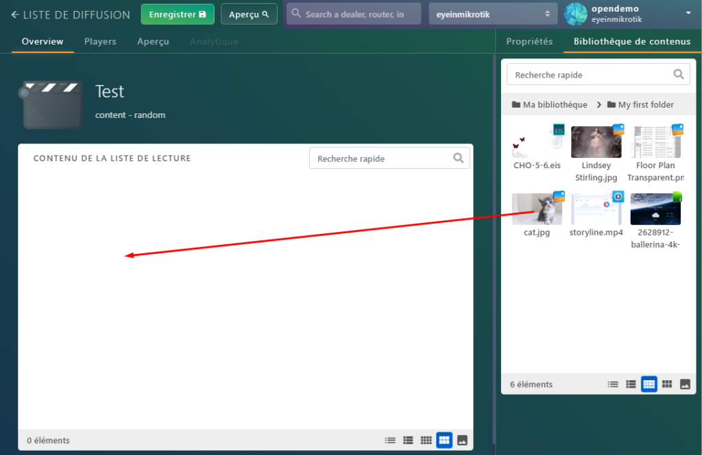 Vous pouvez maintenant naviguer dans votre bibliothèque jusqu’au contenu désiré et le cliquer-glisser dans la liste de lecture.