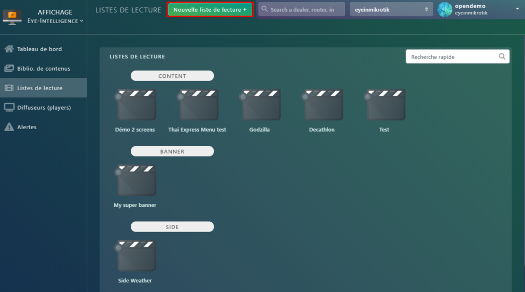 Pour créer une liste de lecture, rendez vous dans la section Liste de lecture puis cliquez sur le bouton « Nouvelle liste de lecture ».