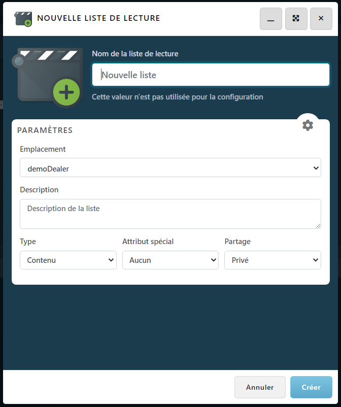 Le type de liste de lecture est un paramètre important qui définit où elle sera affichée à l’écran.