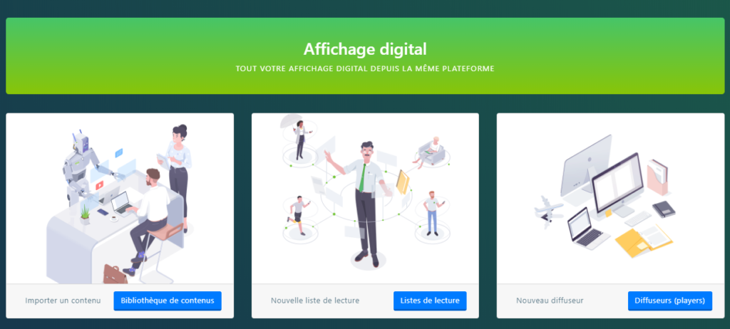 Vous pourrez ici gérer votre bibliothèque de contenu, vos listes de lecture et vos diffuseurs.