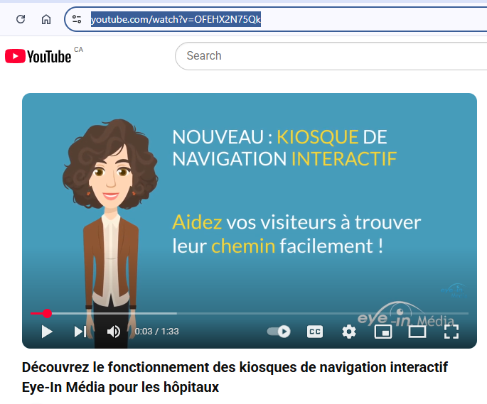 Ouvrez la vidéo que vous souhaitez sur YouTube, et copiez l’URL de la vidéo que vous souhaitez insérer (dans la barre d’url de votre navigateur)