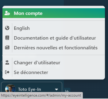 Pour Modifier votre mot de passe, cliquez sur le nom de votre compte situé dans le coin en bas à gauche (ou bien cliquez ici)