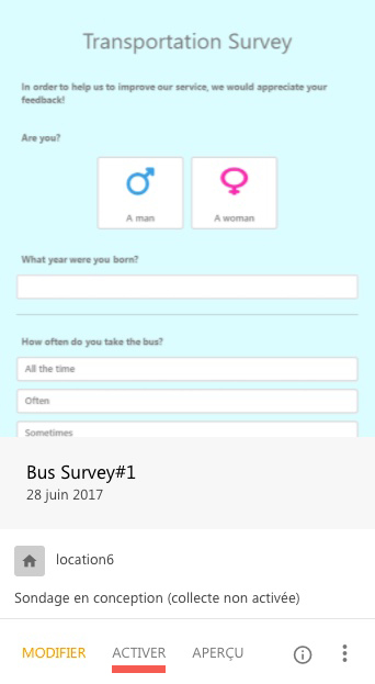 Note importante: Quand le questionnaire est actif, les clients qui l’ont vu et complété avant de se