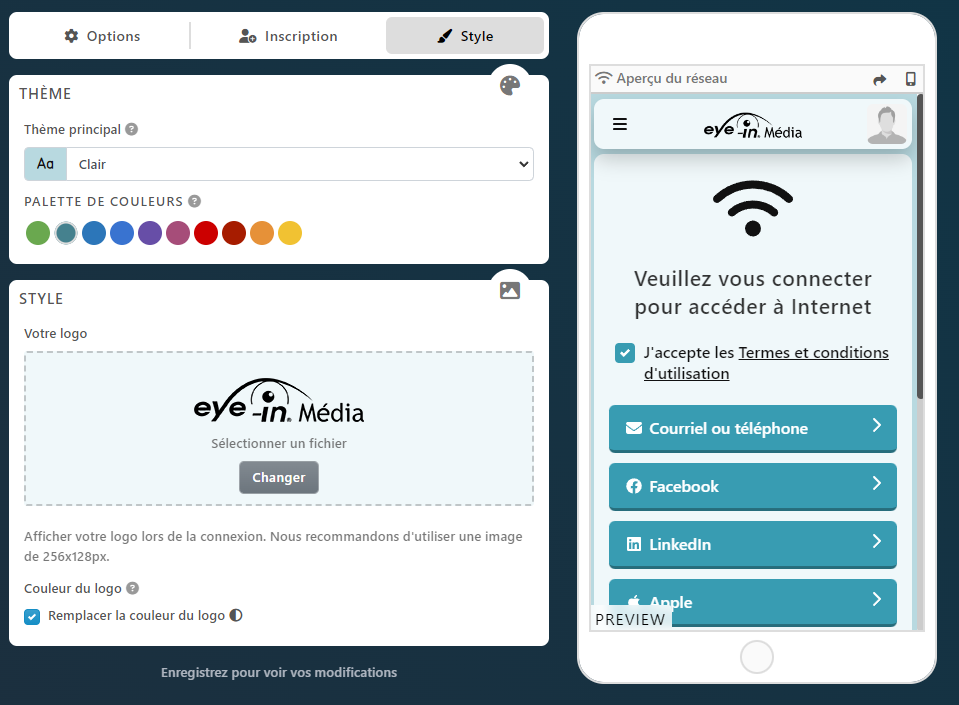 La personnalisation de l’apparence est le troisième onglet de la configuration du portail.