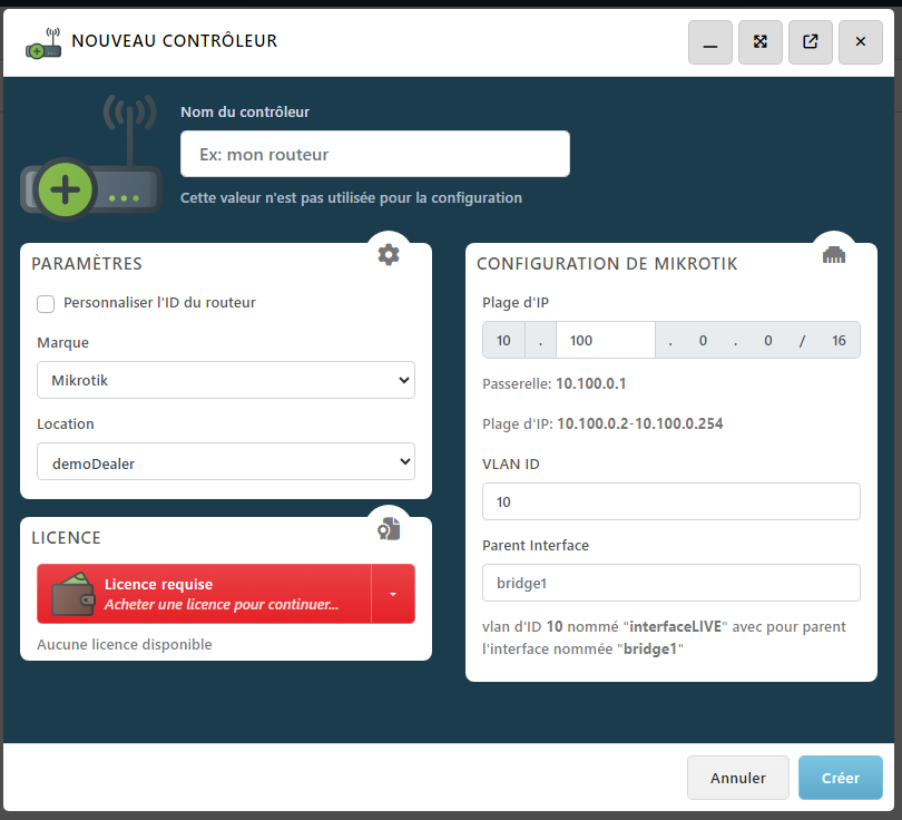 Pour configurer un nouveau contrôleur, cliquez simplement sur le bouton supérieur Ajouter un contrôleur .