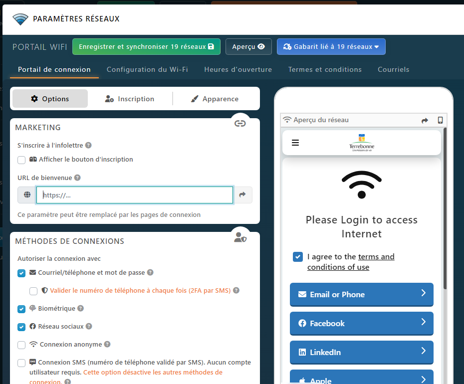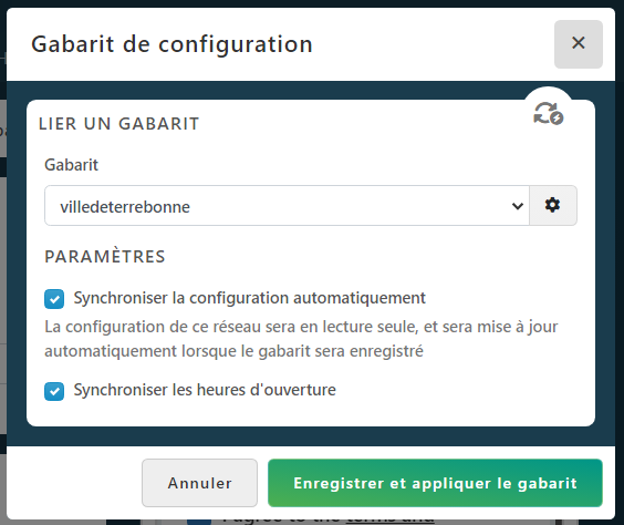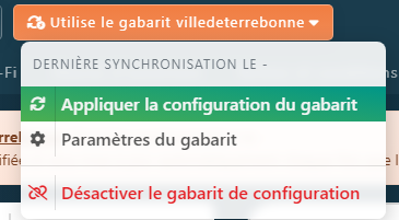 Vous pouvez appliquer le gabarit de configuration en cliquant sur le bouton orange Utilise le gabarit « Nom du Gabarit » puis sélectionner Appliquer la configuration du gabarit.