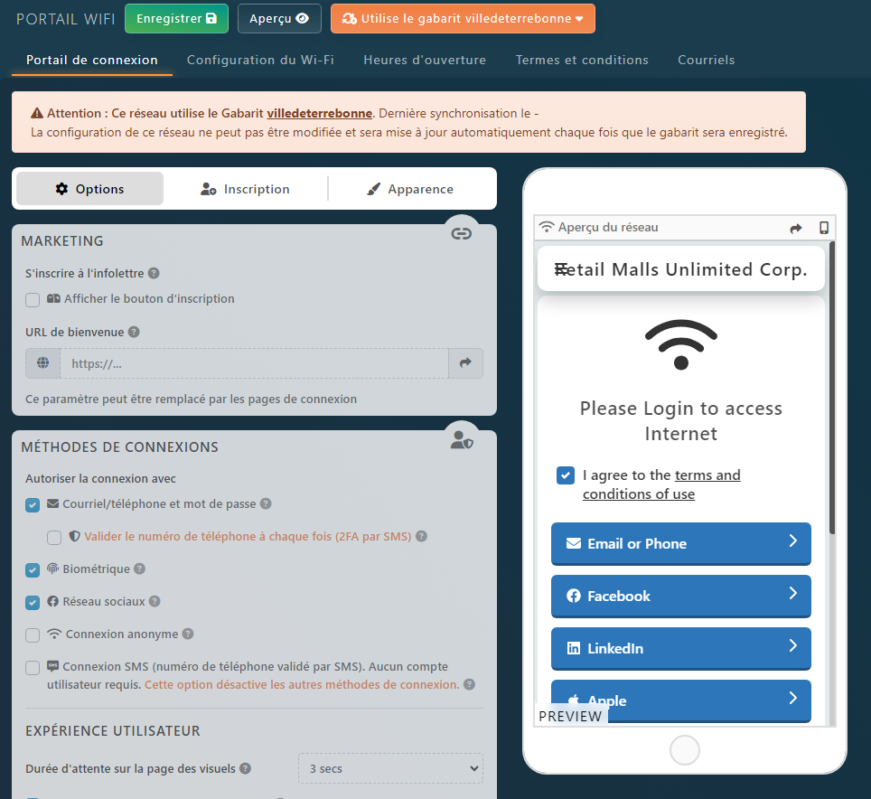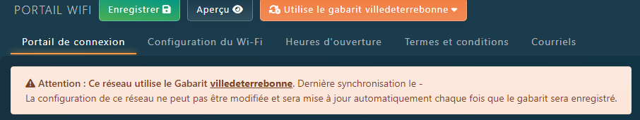 Lorsqu’un réseau utilise un gabarit de configuration , vous verrez un message d’avertissement comme celui ci-dessous.