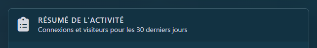 Toutes les données situées sous les statistiques totales sont liées à une période récente définie dans les préférences de votre tableau de bord. La période est détaillée à droite de l’activité récente ou ci-dessous sur mobile