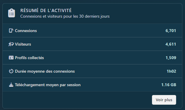 Ce tableau détaille le nombre de connexions que vous avez eues chaque jour.