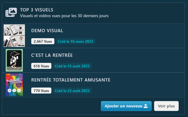 Ce widget permet aux spécialistes du marketing de trouver rapidement les visuels les plus performants diffusés via le portail de connexion.