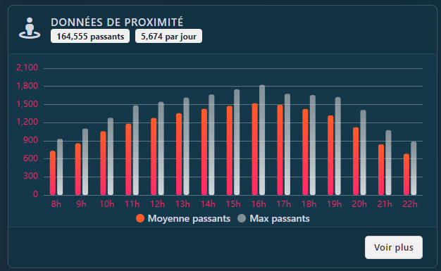 Cliquez sur le bouton Voir plus pour ouvrir le rapport complet des données de proximité qui comprend également une « Heatmap » et une cartographie de proximité par point d’accès.