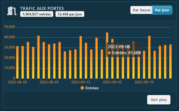 Cliquez sur le bouton Voir plus pour ouvrir le rapport complet sur le trafic des portes.