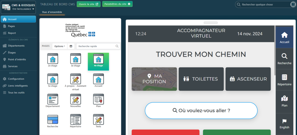 Bienvenue dans nos outils de gestion de Wayfinders, Kiosques et répertoire interactifs, codes QR, sites internet.