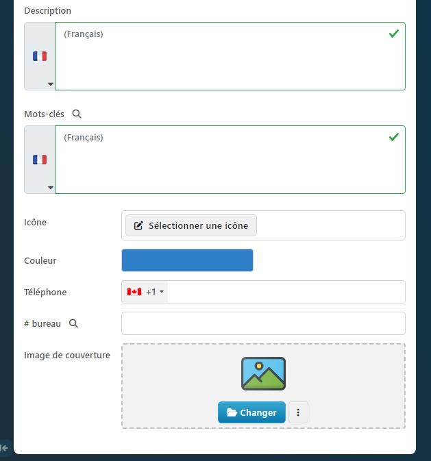 Pour modifier une image, par exemple l’image de couverture ou un logo, cliquez sur le bouton Changer dans la case de l’image.