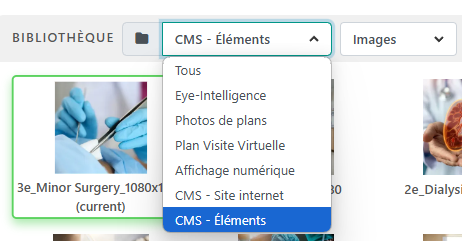 Vous pouvez changer le dossier sur lequel vous travaillez ou le type de contenu que vous souhaitez utiliser en utilisant les filtres.