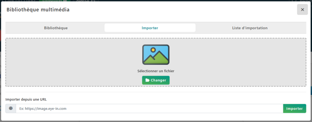 Si vous souhaitez importer une nouvelle image, glissez votre image, ou cliquez sur l’onglet Importer et sélectionnez l’image que vous voulez ajouter.