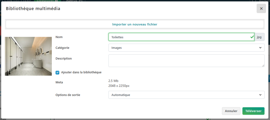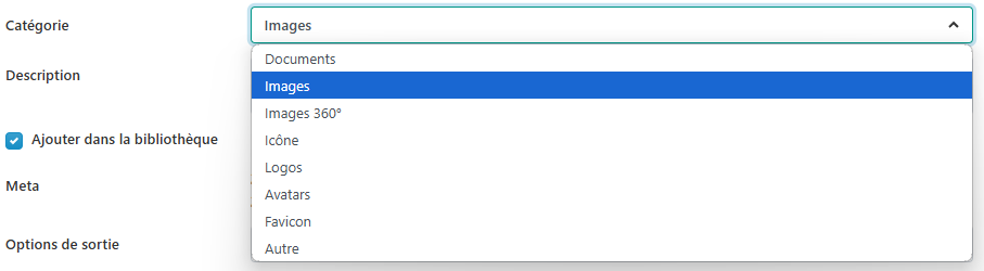 Vous pouvez changer la catégorie de l’image si vous le souhaitez pour garder votre bibliothèque structurée.