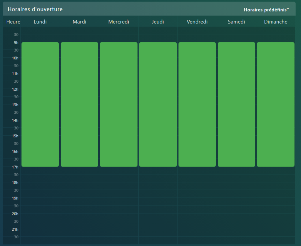Ensuite, ajustez vos heures d’ouverture en faisant glisser les cases correspondant à ces heures jusqu’à ce que vous ayez sélectionné tous les créneaux horaires appropriés.