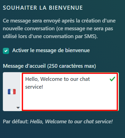 Par exemple, la réponse automatique pour le message de bienvenue est activée dans ce cas: