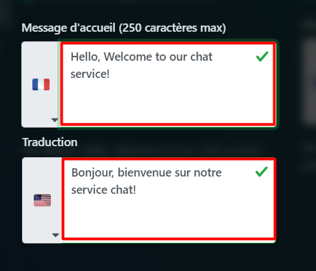 Tapez ensuite une réponse en français et en anglais. Lorsque vous avez terminé avec votre message, cliquez sur la zone à l’extérieur des boîtes de message.