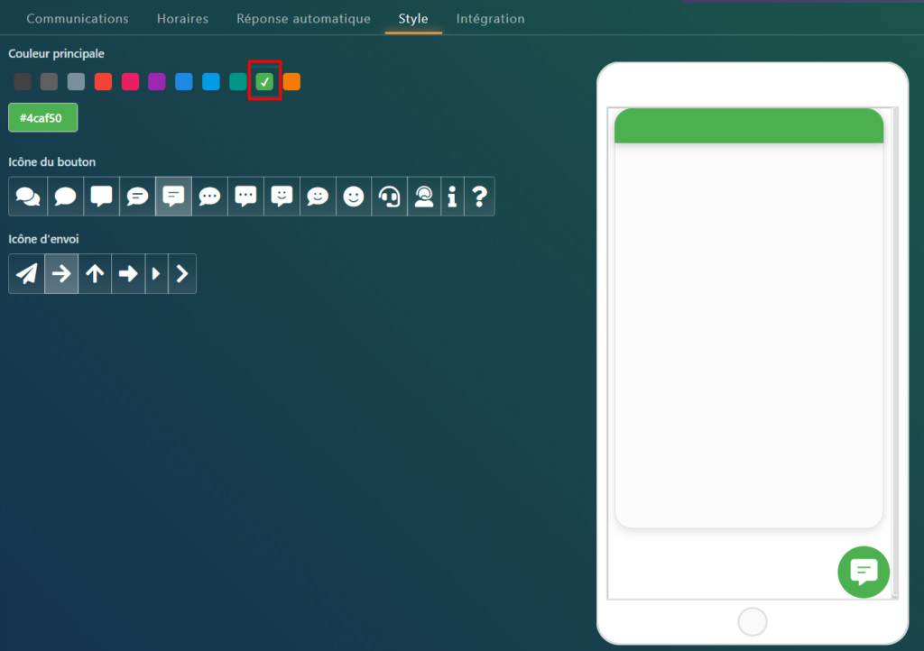 Vous pouvez également changer l’icône du bouton et l’icône d’envoi, par exemple: