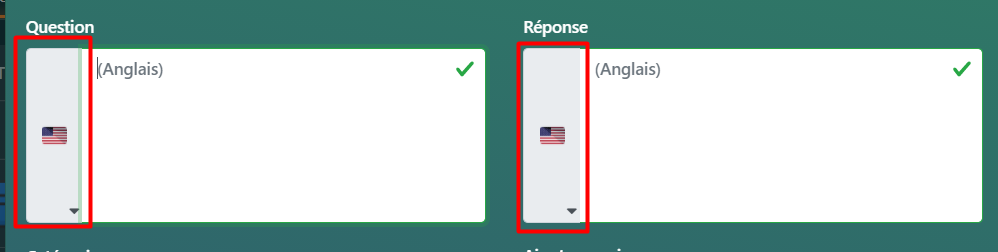 Vous avez la possibilité de basculer entre les langues (anglais ou français) pour la question et la réponse en cliquant sur l’icône du drapeau: