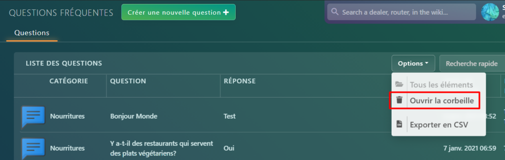 Remarque: si une question est masquée, elle sera déplacée vers la corbeille qui se trouve dans les options: