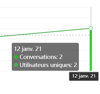 - Le nombre total de conversations, avec le nombre d’utilisateurs uniques (c’est-à-dire les nouveaux utilisateurs qui n’ont jamais utilisé le chat auparavant)