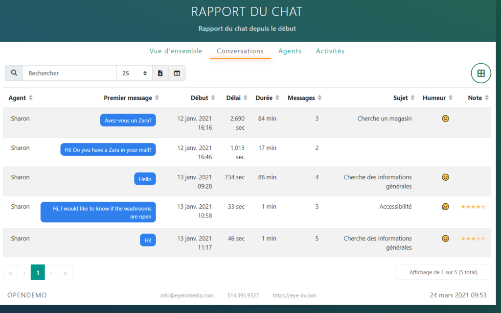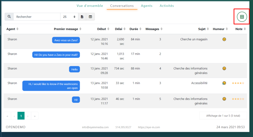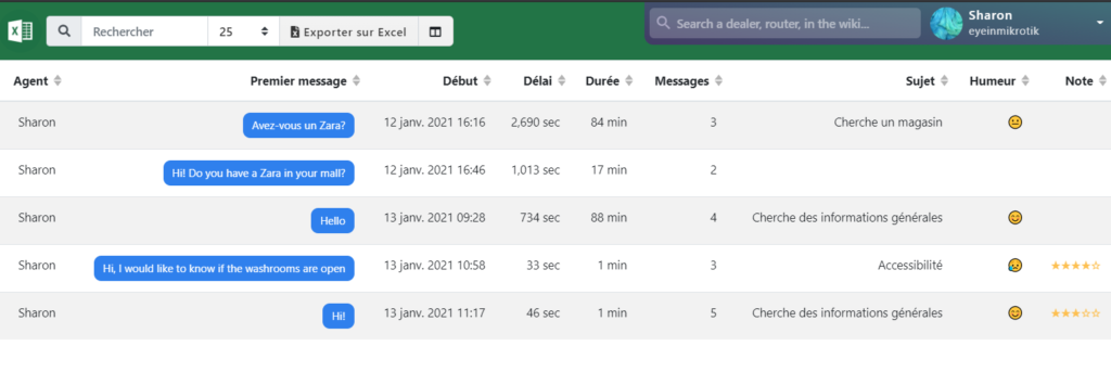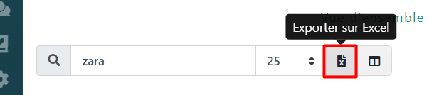 Vous pouvez exporter une liste de conversations vers Excel en cliquant sur le bouton du coin droit: