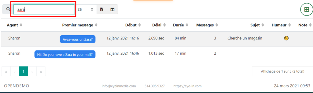 Vous pouvez effectuer une recherche détaillée des conversations à l’aide des outils de la barre de recherche: