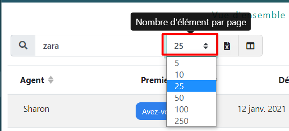- Modifiez le nombre d’éléments que vous souhaitez voir sur une seule page: