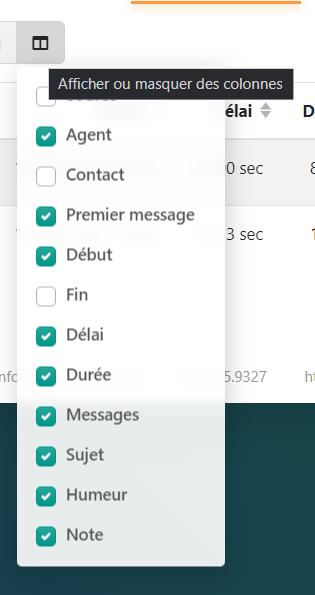 - Masquer / afficher certaines colonnes: