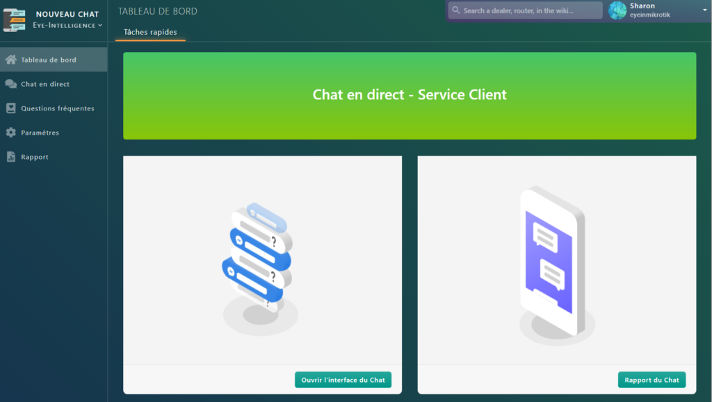 Bienvenue sur le tableau de bord du Chat en direct!