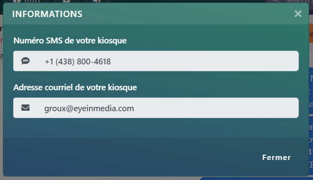 - Afficher le numéro SMS et l’adresse e-mail du kiosque à l’aide d’Info